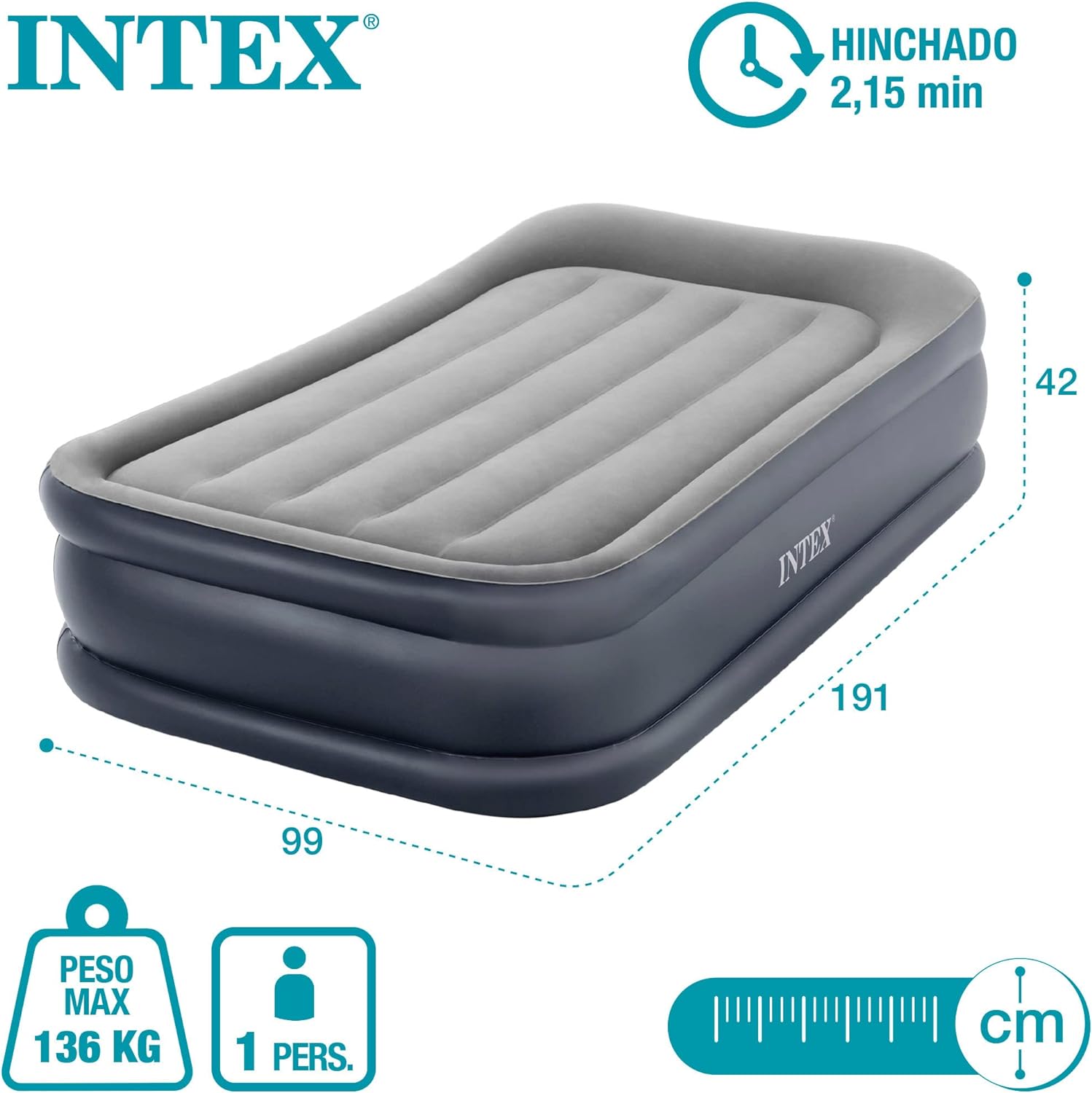 INTEX Twin Deluxe PILLOW REST Airbed W/ Fiber-Tech BIP