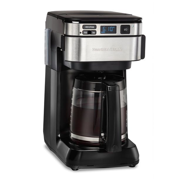 Features: Easily fill coffee and water from the front. Wake-up-ready coffee with Easy-Touch programming. Know when to clean with a cleaning cycle reminder. Get your first cup fast with Auto Pause & Pour Coffee your way with Select-a-Brew. Large water-view window Peace of mind with 2-hour auto shutoff. Easy to clean In the Box: Coffee Maker Main Unit - Glass Carafe - Reusable mesh filter - Brew Basket - Instruction Booklet WATTAGE: 950W |