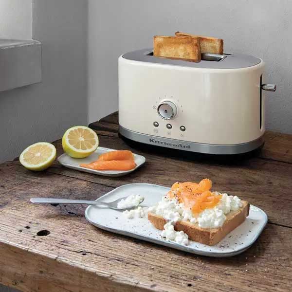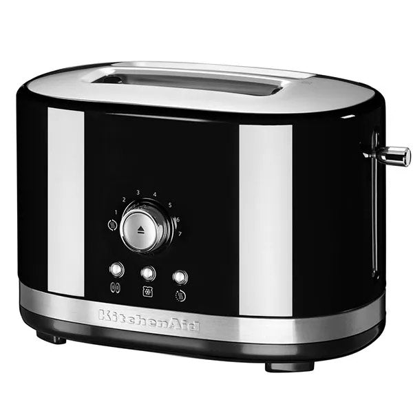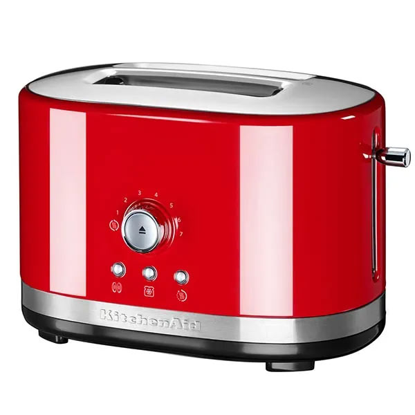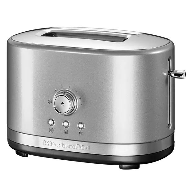 With four sophisticated functions: Keep Warm, Frozen, Reheat and Bagel, the KitchenAid Toaster gets everyday off to a great start. If you’re called away, your toast automatically stays hot with the 3-min Keep Warm function. You can even quickly reheat toasted items in 30 seconds. Why not make a change from sandwiches and enjoy a continental bagel or bun, lightly browned inside and warmed outside, making the most of the Bagel option. A powerful defrost feature will gently defrost and toast frozen slices in minutes. Enjoy smart technology with a motorized lower and lift function to easily start or cancel toasting at any time. An audible alert lets you know when the toasting is done. KitchenAid’s iconic design hallmarks ensure this toaster pride of place on a countertop. The gently rounded body in brushed stainless steel is accented with chrome temperature knobs, elevating this everyday essential to a stylish statement.