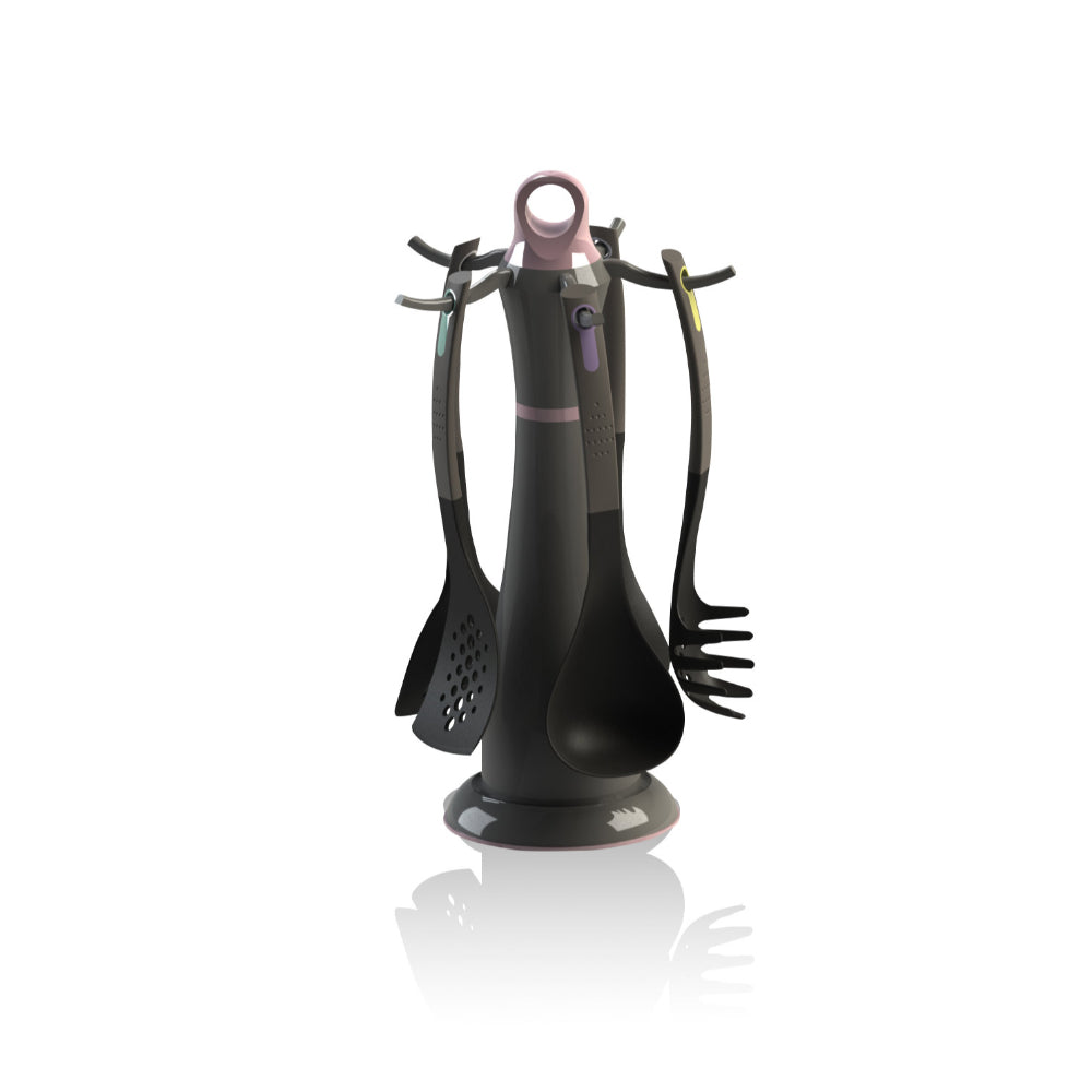 Set of 6 pieces with stand, takes up to 180 oC of heat Color: white and grey. ITS ALL WHAT YOU NEED IN YOUR KITCHEN!! |